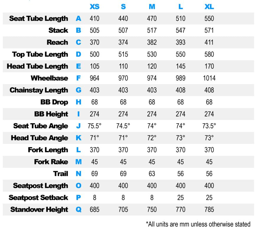 Sizes: Please refer to geometry charts below for sizing