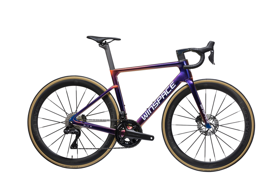 The pinnacle of lightweight aerodynamics. The SLC5 blends speed, precision, and aero efficiency in a race-ready frame. With optimized tube profiles and a premium carbon layup of M46, M65, T800, and T1100 fibers, it delivers explosive acceleration, sharp handling, and lasting comfort. Paired with the HYPER 3 wheelset, every climb, descent, and sprint feels effortless.